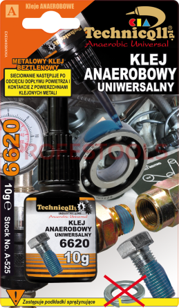 Klej Anaerobowy nr 6620 w kolorze niebieskim o średniej sile wiązania przeznaczony jest do zabezpieczania połączeń śrubowych przed odkręceniem, do osadzania łożysk mało obciążonych oraz do uszczelniania połączeń gwintowych dopasowanych. Doskonale zastępuje zawleczki i podkładki sprężynujące. Jest najbardziej uniwersalnym klejem również w montażu i uszczelnianiu urządzeń, od których wymagany jest w razie awarii szybki demontaż.